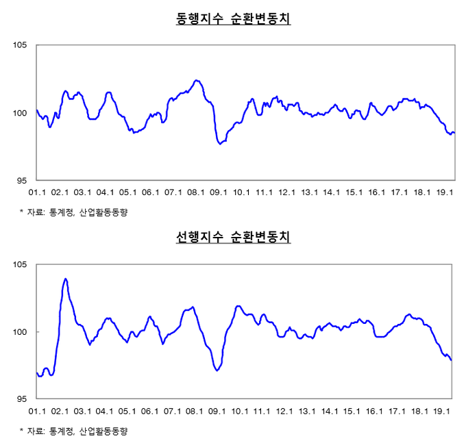현재 경기 상황을 보여주는 6월 경기동행지수는 전달보다 0.1포인트 하락했다. 전망을 보여주는 선행지수 순환변동치도 0.2포인트 내렸다.