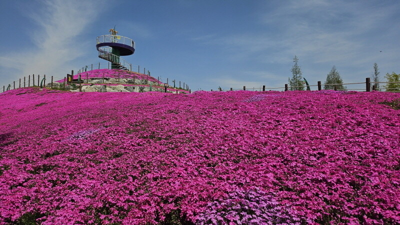 ▲ 거창창포원에 만개한 꽃잔디 군락지 모습. [거창군 제공]