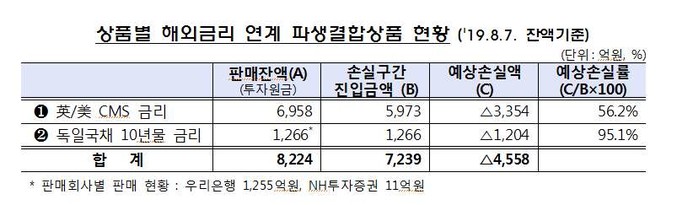 이번에 문제가 터진 금리연계 파생결합상품, DLF와 DLS는 영국과 미국 이자율스와프(CMS) 금리, 독일 국채 금리와 연계된 파생상품이다. 금리가 만기까지 일정 구간에 머무르면 연 3.5∼4.0%의 수익률을 보장하지만 기준치 아래로 내려가면 손실이 발생하는 구조인데, 이 번에도 해당 주요 해외금리가 기준치 아래로 내려가면서 원금을 날리는 위험이 현실화한 것이다.