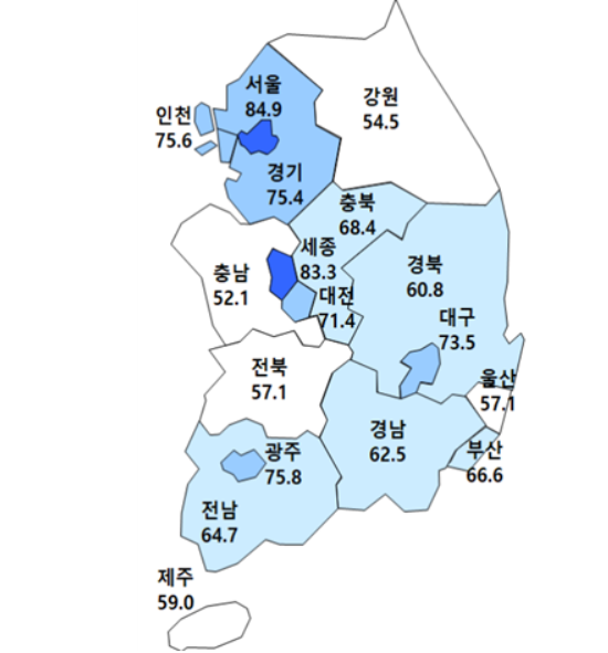 서울 84.9, 세종 83.3…나머지 50∼70선