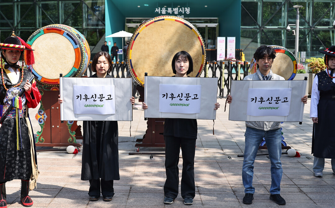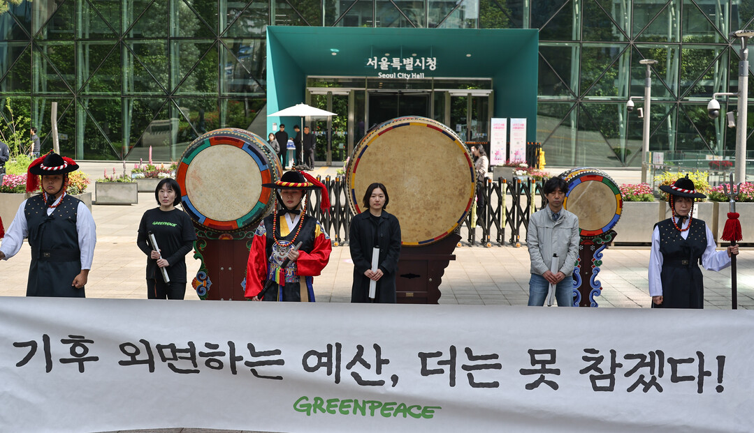 그린피스는 이날 퍼포먼스를 통해 기후위기 대응에 미온적인 정치권을 비판하며, 서울시의 '기후예산제' 실효성 강화를 촉구했다.