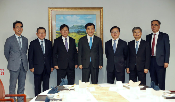 ▲ 이번 경제동향 간담회에는 이주열 총재와 정규일 부총재보, 김용근 한국경영자총협회 상근부회장, 김준동 대한상공회의소 상근부회장 등이 참석했다. [한국은행]