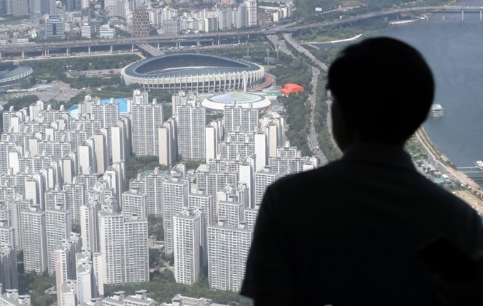 ▲ 지난해 오늘 '8·2대책'이 발표된지 꼭 1년을 맞은 지금 서울의 주택시장이 다시 불안한 조짐을 보이고 있다. 2일 연일 폭염이 계속되는 가운데 서울시 송파구 롯데월드타워에서 내려다 본 한강 변 아파트 단지들의 모습. 무더위와 뛰는 집값, 이래저래 한숨만 나온다. [연합뉴스 제공]