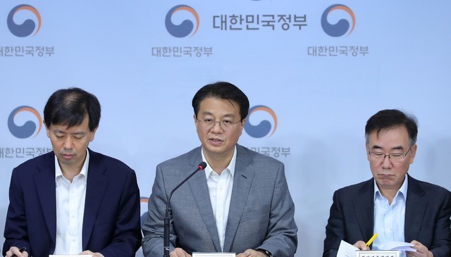 ▲ 방기선(가운데) 기획재정부 차관보가 26일 정부서울청사에서 열린 추석 민생안정대책 합동브리핑에서 종합대책을 발표하고 있다. [뉴시스]