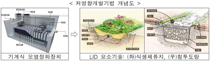 택지를 조성할 때 이 기법을 사용하면 폭우에 따른 도시 침수, 하천의 건천화(마르는 현상), 오염물질 하천 유입, 도시 열섬 효과 등 환경 문제를 줄일 수 있다는 게 정부의 설명이다.