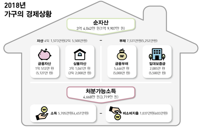가계의 재무건전성은 소폭 나아졌다. 우리나라 전체 가구의 자산대비 부채 비율은 18.1%로 지난해보다 0.2%포인트 하락했다. 금융부채가 늘긴 했으나 평균 자산(4억1573만원)도 지난해 수준(3억8671만원)보다 7.5% 증가한 데 따른 것이다