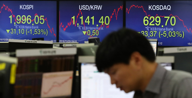 한국 증시는 주요 선진국에 비해 변동폭이 유독 크다. 지난달 코스닥지수는 21.11%, 코스피지수는 13.37% 하락했다. 세계 주요 30개 증시 중 하락률로 따지면 코스닥은 1위, 코스피는 3위를 기록한 것이다. 역설적으로 미중 무역전쟁으로 관세 인상의 직격탄을 맞은 중국 상하이 증시 (-7.89%)보다도 낙폭이 컸다. 무역전쟁의 피해를 직접적으로 입는 곳은 중국임에도 오히려 한국 기업 주가가 더 급락한 것이다.