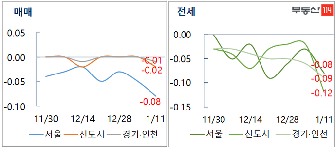 ▲ 수도권 매매-전세 주간 가격 변동률 [부동산114 제공]