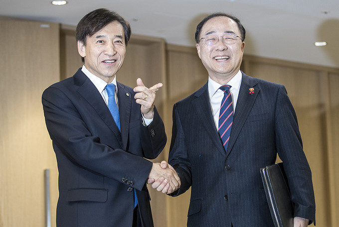 두 사람은 본격적인 회동에 앞서 경제현안에 대한 생각을 밝혔다. 홍 부총리와 이 총재 모두 내년 경제 불확실성 대비를 위한 공조를 강조했다.