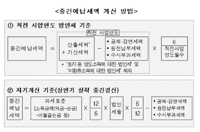 12월에 사업연도가 종료되는 법인은 1월 1일부터 6월 30일까지 중간예납 세액을 신고하고 납부해야 한다. 올해 신설된 법인이나 이자소득만 있는 비영리법인, 휴업 등의 사유로 올해 상반기 사업실적이 없는 법인 등은 중간예납 세액 납부 의무가 없다.