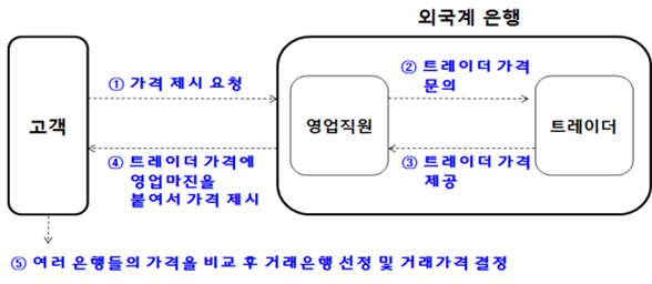 은행의 제시 가격이 다를 경우 고객은 높은 가격을 제시한 은행에게 가격 인하를 요구하거나, 높은 가격을 제시한 은행의 거래물량을 줄이고 낮은 가격을 제시한 은행의 거래물량을 확대할 수 있기 때문이다.