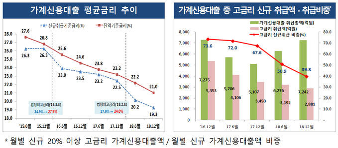 금융당국은 지난해 2월 법정 최고금리 인하(연 27.9→24%)와 정부의 고금리 대출 감축 노력이 이런 결과를 낸 것으로 분석했다.