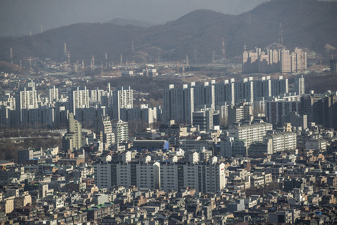 ▲ 당초 오는 10월로 예정돼 있던 청약시스템 이관 작업이 주택법 개정안 국회 계류 등을 이유로 연기됐다. 사진은 롯데월드 타워에서 바라본 서울 시내 아파트. [정병혁 기자]