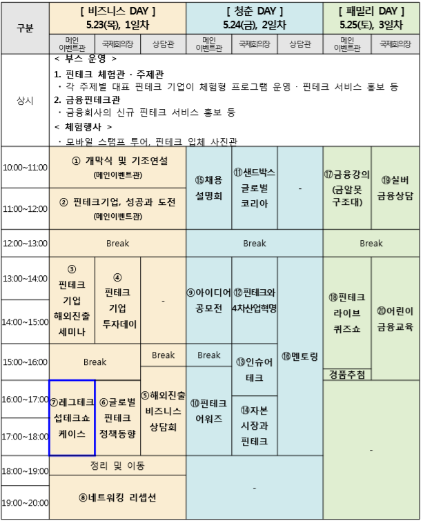 ▲ Korea Fintech Week 2019 일정 [금융감독원]