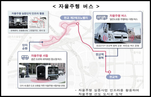 현재 검토 중인 판교 첨단산업단지의 분야별 주요기술은 △자율주행 버스 △AI(인공지능) 가변도로 △스마트 주차 △스마트 과속방지턱 △미세먼지 프리존 △스마트 텃밭 등이다.