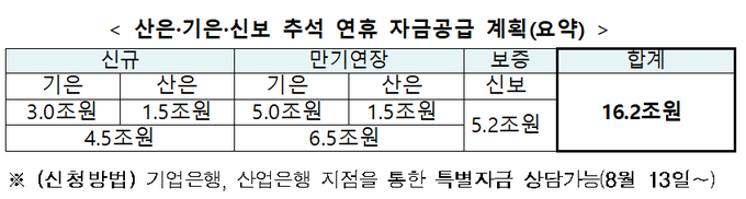 추석을 맞아 긴급한 자금이 필요한 중소기업과 소상공인에 모두 16조2000억 원의 금융 지원이 실행된다.