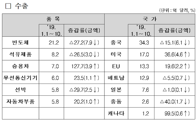 그렇다고 반도체 업황으로 인해 수출 전망을 바꿀 단계는 아니라고 선을 그었다. 고 과장은 "미중 무역갈등과 관련해서는 긍정적 소식도 들리고 있으며 관련 여건이 변함에 따라 수출이 영향을 받을 수 있어 더 시간을 두고 점검해야 할 것 같다"라고 말했다.