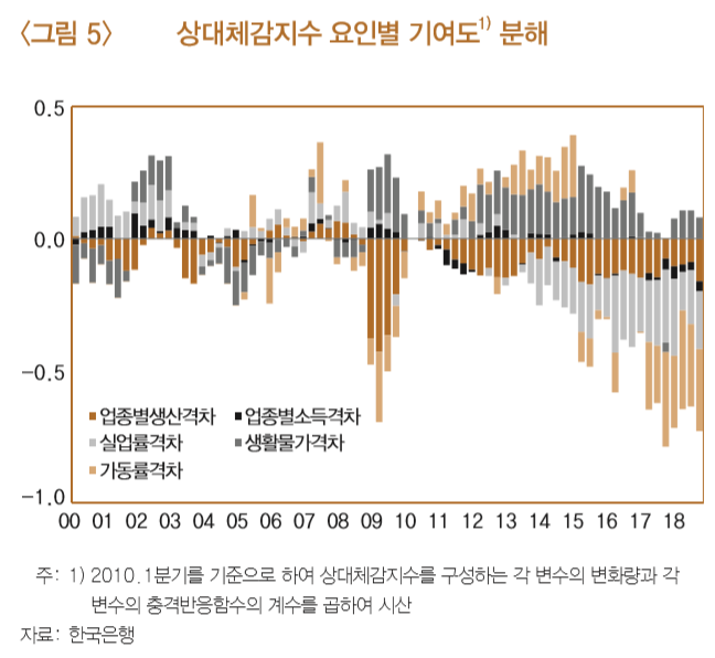 업종별 소득 격차는 상대체감지수에 미치는 영향이 크지 않은 것으로 추정됐다.