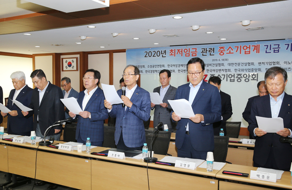 중소기업단체협의회가 공동성명을 통해 내년도 최저임금이 동결돼야 한다는 입장을 밝혔다.