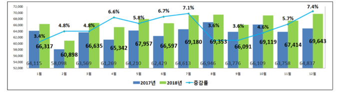 ▲ 2018년 월별 항공교통량 [국토부 제공]