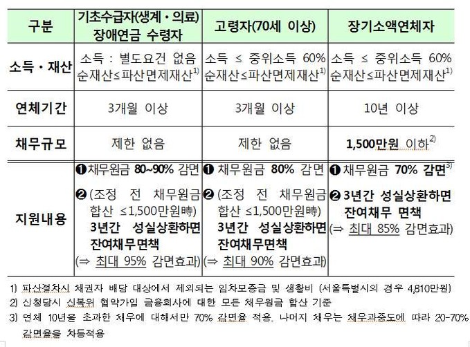 ▲  취약채무자 특별감면제도 내용 [금융위원회]