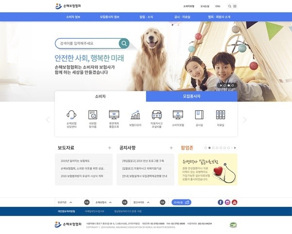 홈페이지는 통합검색 솔루션 도입을 통해 금융당국(금융위원회, 금융감독원), 유관기관(생명보험협회, 보험개발원 등), 손해보험회사의 유용정보를 한 눈에 검색할 수 있도록 바뀌었다.