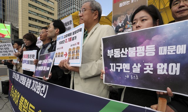 경제정의실천시민연합, 민달팽이유니온 등 12개 시민단체로 구성된 '부동산 불평등 해소를 위한 보유세강화시민행동'(시민행동)은 14일 오후 서울 광화문광장에서 기자회견을 열고 "부동산 불로소득의 환수 없이는 뛰는 집값과 부동산 소유 편중 심화를 막을 수 없다"고 밝혔다.