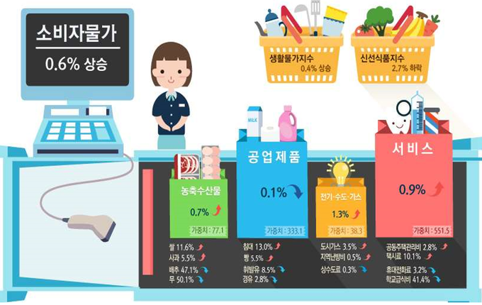 4월 소비자물가 0.6% 상승…4개월 연속 0%대