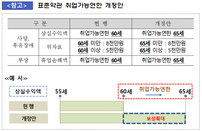 위자료도 현재는 60세 미만 8000만 원, 60세 이상 5000만 원에서 65세 미만 8000만 원, 65세 이상 5000만 원으로 상향 조정된다.