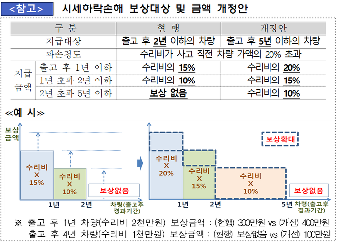 사고 차량 시세 하락분 보상 기간 2년→5년 확대