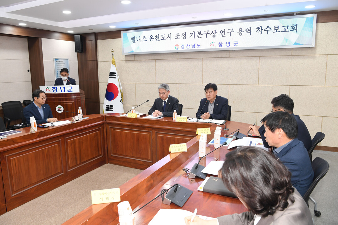 ▲ 지난 21일 군청 회의실에서 웰니스 온천도시 조성 기본구상 연구용역 착수보고회가 열리고 있다. [창녕군 제공]