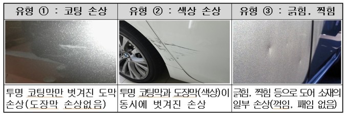 개선안에 따라 4월부터 앞·뒤·후면도어, 후드, 앞펜더(바퀴덮개), 뒷펜더, 트렁크리드 등 7개 외장부품의 가벼운 손상 땐 판금과 도색을 위한 복원수리비만 지급된다.