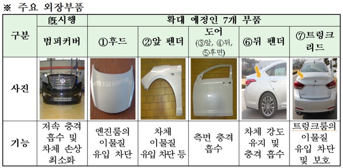 복원수리비 적용 범위 7개 외장부품으로 넓혀