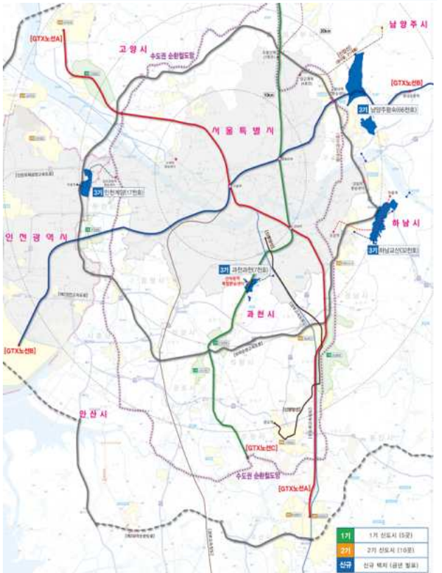 김현미 국토교통부 장관이 내건 "서울 도심과 30분 내 접근성"을 고려한 것으로 보인다. 이들 지역은 서울 경계로부터 2기 신도시(10㎞)는 물론 분당 등 1기 신도시(5㎞)보다도 가깝다.