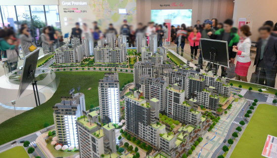 ▲  HUG의 지방 분양보증 주택수가 8년 만에 최저치를 기록할 것으로 보인다. 사진은 견본 주택을 살펴보고 있는 청약 예정자들의 모습 [뉴시스]