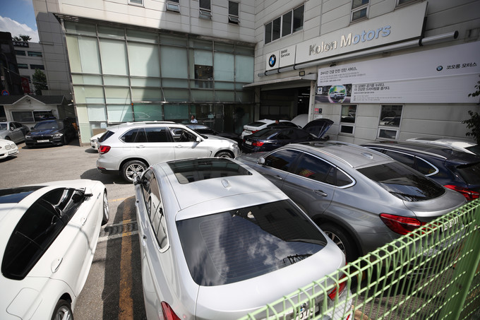 ▲ 10일 오전 서울 시내 한 BMW 서비스센터에 점검을 받으려는 차량들이 대기하고 있다. [뉴시스]