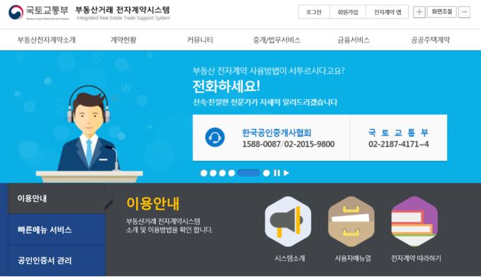 ▲ 부동산 전자계약 시스템 이용률이 전체 부동산 매매 거래의 0.34%에 불과해 유명무실하다는 지적이 나왔다. [홈페이지 캡처]