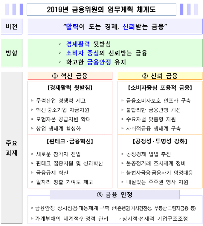 금융위원회는 이런 내용 등을 담은 2019년 업무계획을 7일 발표했다.