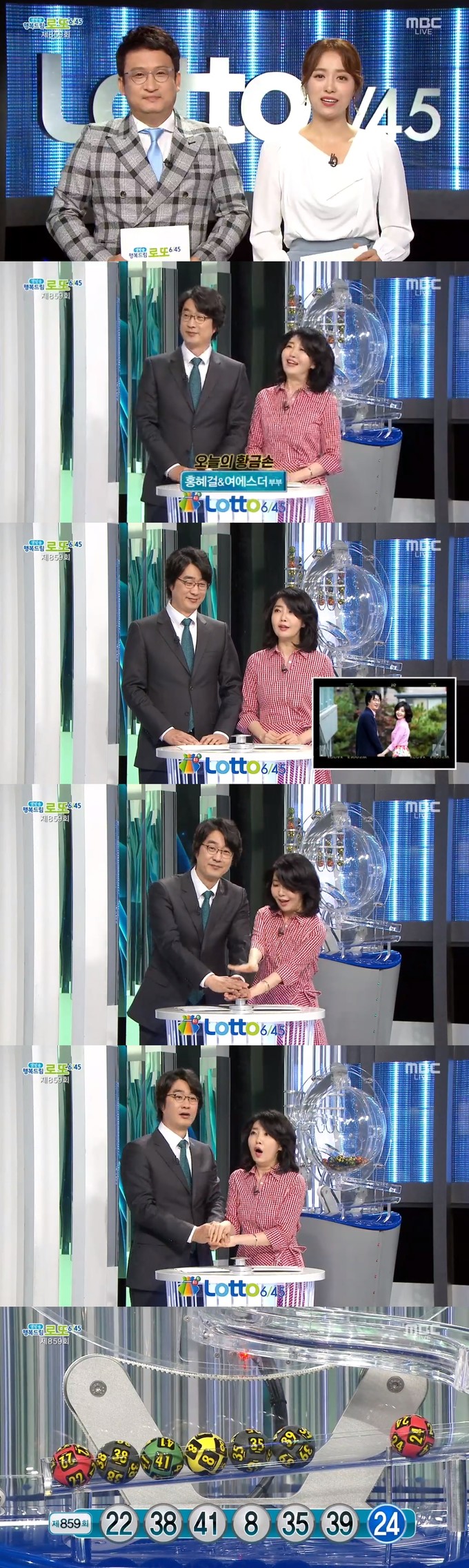 18일 방송된 MBC '생방송 행복드림 로또 6/45'에서는 제859회 로또복권 당첨번호 추첨이 진행된 가운데 황금손으로 부부인 의사 출신 기자 홍혜걸과 의사 여에스더가 출연했다.