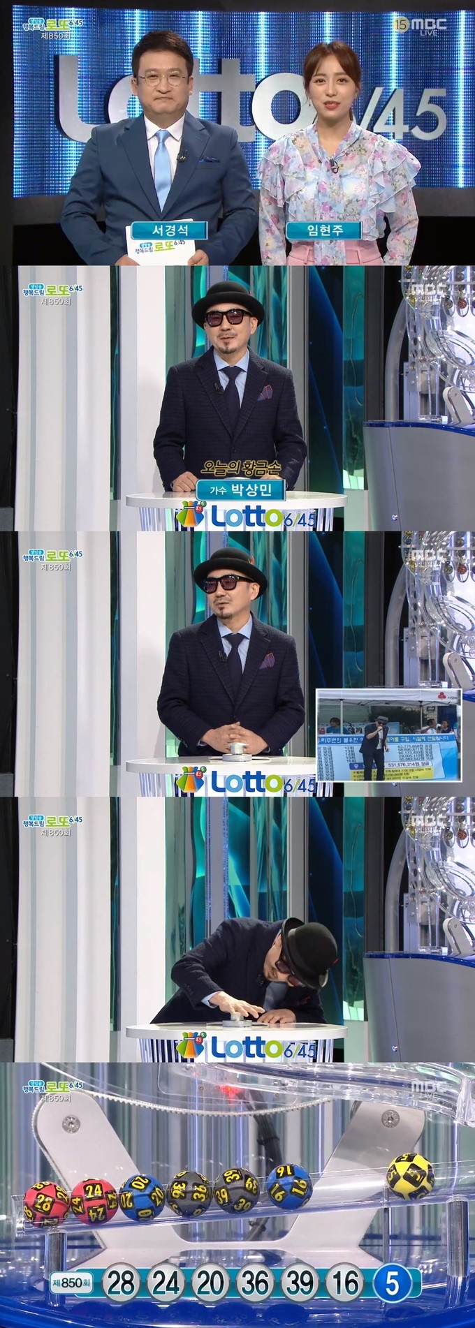 ▲ 16일 방송된 MBC '생방송 행복드림 로또 6/45'에서는 가수 박상민이 출연한 가운데 제850회 로또 복권 당첨 번호 추첨이 진행됐다. [MBC '생방송 행복드림 로또 6/45' 캡처]
