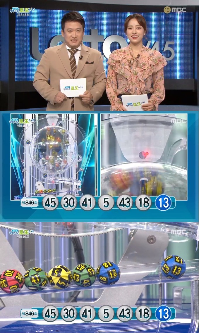 16일 오후 방송된 MBC '생방송 행복드림 로또 6/45'에서는 로또 846회 당첨번호가 공개됐다.