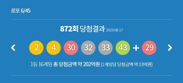로또 872회 당첨번호 2·4·30·32·33·43…당첨지역은?