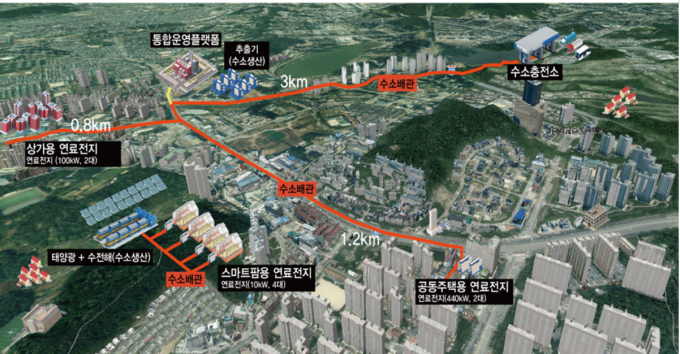 이 사업비를 바탕으로 수소 시범도시에는 수소를 에너지원으로 삼는 공동주택(연료전지 440㎾급 설치), 상업빌딩(100㎾급), 통합운영플랫폼(센터), 수소 배관, 도시가스 추출기 등이 들어선다.