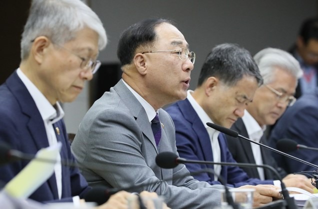 ▲ 홍남기 부총리 겸 기획재정부 장관이 14일 오전 정부세종청사에서 열린 제4차 혁신성장전략회의에서 모두발언을 하고 있다. [뉴시스]