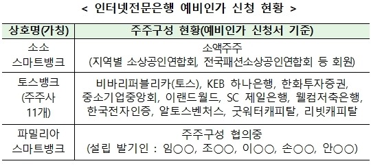 ▲ 인터넷전문은행 예비인가 신청 현황 [금융위원회 제공]