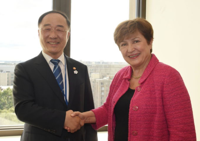 게오르기에바 IMF 신임 총재는 17일(현지시간) 워싱턴DC에서 홍남기 부총리 겸 기획재정부 장관과의 양자 면담을 통해 "고령화 대응과 여성의 경제활동 참여 제고가 중요하다"고 강조했다.
