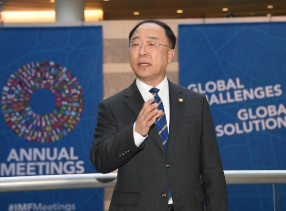 홍 부총리는 주요20개국(G20) 재무장관·중앙은행총재 회의, 국제통화기금(IMF)·세계은행(WB) 연차총회 등 참석을 위해 지난 15일부터 미 뉴욕과 워싱턴DC를 방문 중이다.