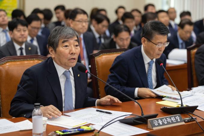 은행들의 내부통제 문제를 지적하는 질의에는 "(은행권의) 내부통제 규율을 관련 업권법에 넣는 방안을 추진할 필요가 있다고 본다"며 "이 같은 방안이 현실화되기까지는 업무협약 체결이나 다른 방법 등으로 은행의 내부통제를 선진화시키도록 지도할 것"이라고 답했다.
