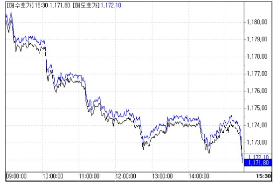 종가 기준으로 지난 7월 5일(1170.4원) 이후 약 세달 만에 가장 낮은 수준이다.