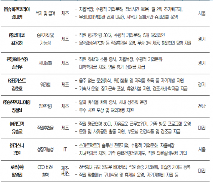 ▲'일하기 좋은 중소기업' 최우수 선정기업 현황. [대한상의 제공]